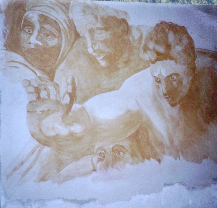 Un autre enduit fin viendra recevoir une illustration reportée à l’aide